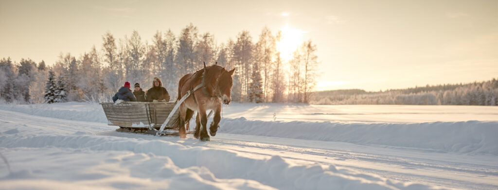 This is a tour with peace and quiet close to nature – a sleigh ride with North Swedish draft horse along the beautiful Kalix River.